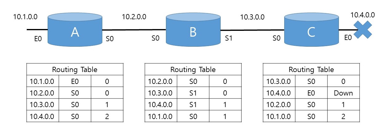 - 1대의 Router를 추가하기 위해 다른 Router에서도 변경 작업이 필요(네트워크가 커지면 Router 정보 관리가 어려움)
